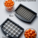 * Точный слайсер и специальная насадка для кубиков: Нарезайте овощи и фрукты ровными ломтиками или кубиками для салатов, закусок и украшения блюд.