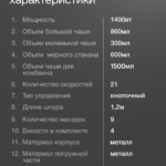 * Мощный блендер: Идеален для приготовления смузи, коктейлей, соусов и пюре.