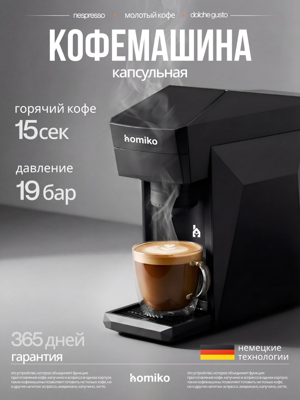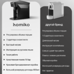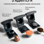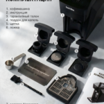 В комплекте — всё необходимое: поддон, щётка, мерная ложка и адаптеры для разных типов кофе. Совмещение металлического корпуса и пластиковых элементов создаёт надёжный современный дизайн. Открывайте мир профессионального кофе прямо у себя дома или в офисе.